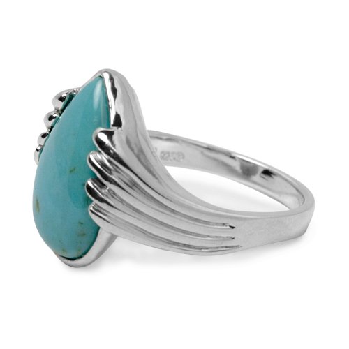 Sterling Silver Kingman Turquoise Blue-Green Pear Shape Ring Feature