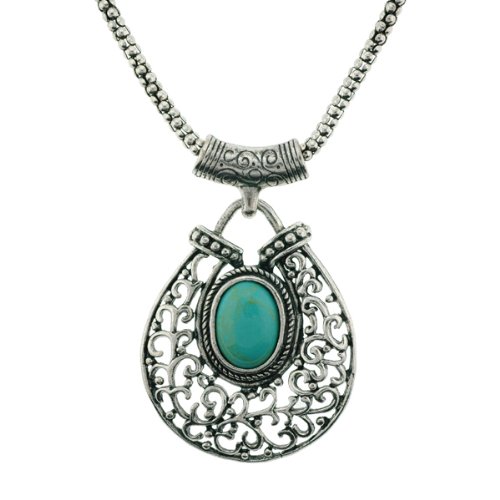 Metal Necklace - Oval Turquoise Metal Teardrop Shape Pendant - 12mm Dangling Ball Earrings - 18" Necklace with 2.5" Chain Extension - 11" Overall - Lobster Clasp Review