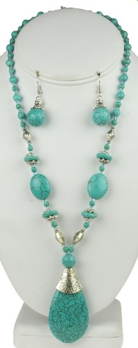Turquoise Drop Natural Stone Necklace & Earring Set Overview