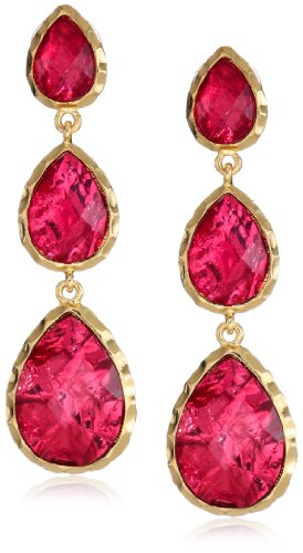 Amrita Singh Three Drop Ruby-Colored Foil Earrings Overview